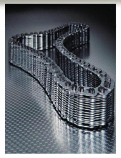 CVT的結構比傳統變速器簡單、體積更小,它既沒有手動變速器的眾多齒輪副,也沒有自動變速器復雜的行星齒輪組,主要靠主、從動輪和傳動帶實現速比的無級變化,傳動帶一般有橡膠帶、金屬帶和金屬鏈等,較有實用價值的是金屬帶和金屬鏈。因此,現代汽車上采用的無級變速器有兩種:金屬帶V輪式無級變速器和金屬鏈V輪式無級變速器。