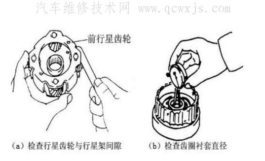 (2)行星齒輪變速機構(gòu)的工作間隙檢查 對行星齒輪式自動變速器,需檢查行星輪與行星架間隙、齒輪襯套直徑。