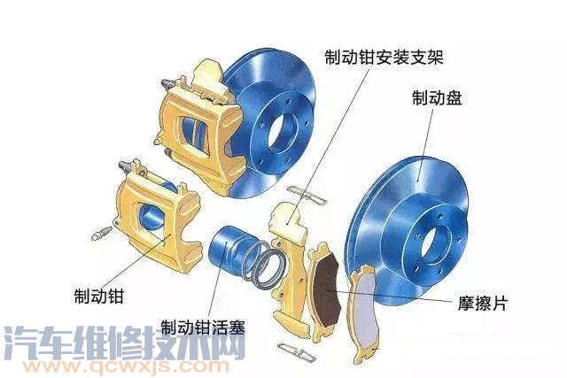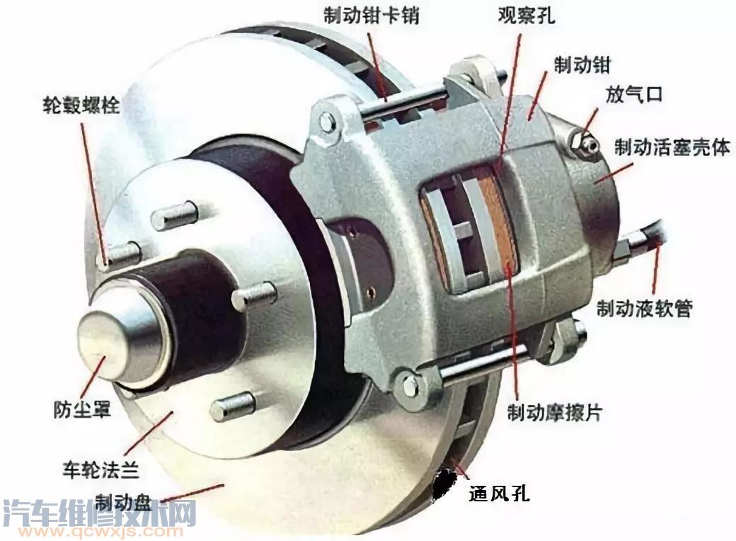 4.剎車分泵:是各個車輪產生制動力動作的主要部件。主要由制動鉗、制動鉗活塞、制動鉗安裝支架等組成。
