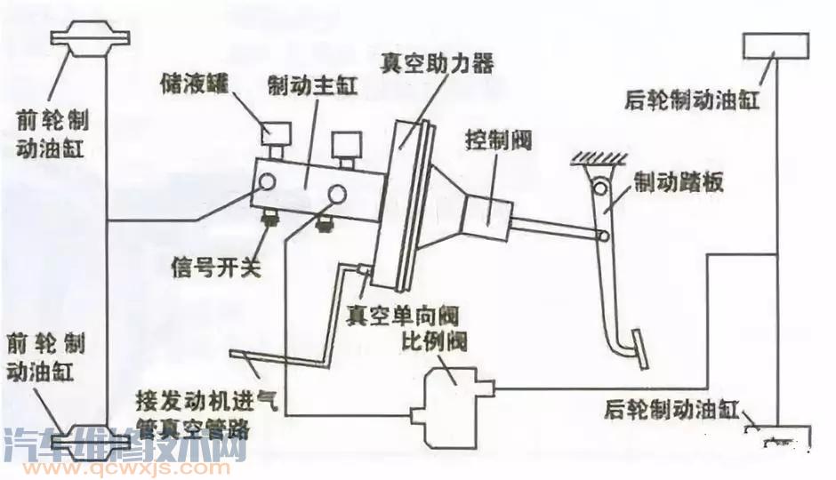 3.真空助力器:借助真空形成剎車助力,減小施加于制動踏板上的力(即以較小的力產生較大的制動力)。
