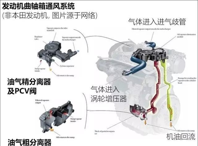 剛才解釋了為何水蒸氣和汽油會混入機油內,但是這不是發動機設計的問題,而是一個不可避免的現象。幾乎所有的發動機都會在曲軸箱裝置強制通風系統(Positive Crankcase Ventilation,PCV),當機油溫度升高,混入的水蒸氣和汽油就會蒸發,然后通過油氣分離裝置將蒸汽態的機油與它們進行分離,然后機油回流到曲軸箱,水蒸氣、汽油進入進氣歧管,然后再導入氣缸內二次燃燒掉。