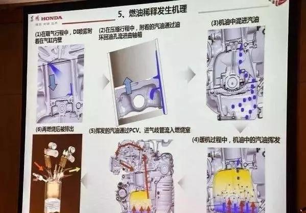 機油增多的原因其實與機油乳化非常相似,甚至出于同樣的“作案手法”。當前許多品牌的車輛都采用了缸內直噴的進油方法,甚至為了更好地利用進氣滾流促進燃燒效率,許多發動機設計上還采用了側置缸內直噴的形式。