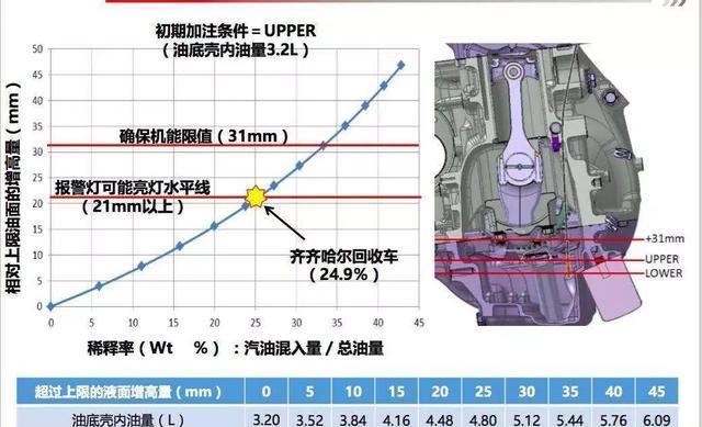 答案是非極端情況下不會。機油的作用是潤滑發動機的各個零部件,但是機油規格并不會因為混入了少量的水分或汽油而迅速“變質”,所有人的汽車多多少少都會有少量汽油和水分混入。工程師為此做了大量的測試,機油稀釋后的性能限值范圍非常寬廣,直到汽油混入超過機油容量的60%,也就是3.2L機油內混入了1.92L的汽油,才逼近機油的性能限值,說實話這種情況已經非常極端了。