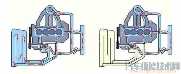 但是散熱器的散熱功率很大,如果冷卻液一直在散熱器循環的話很快就會導致發動機溫度過低,這時候很多原本可以用來做功的熱量就被發動機吸收并被冷卻液運輸到散熱器散發掉,引起油耗升高。而且低溫下汽油霧化不好,發動機更容易產生積碳。