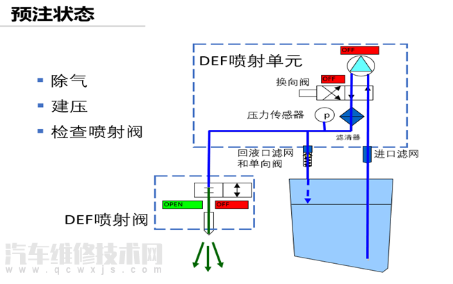 ①DEF噴射單元將會改變換向閥位置,從而改變DEF的流動方向;