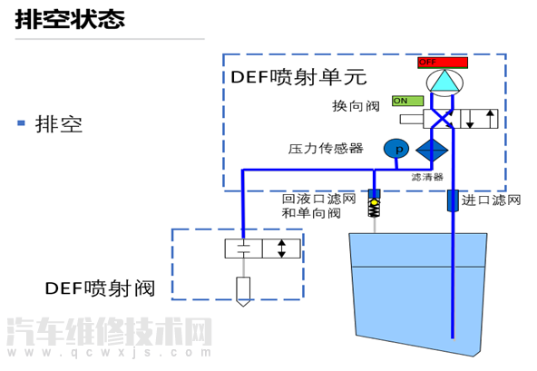 當駕駛員斷開鑰匙開關、等待一定時間后, SCR系統開始排空過程;