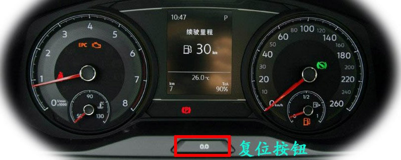 1、點火開關關閉,在熄火狀態。2、按住儀表盤上的復位按鈕“0.0”,按鈕位置儀表盤旁邊。