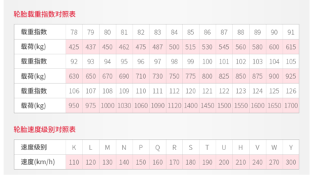 載重指數(shù)是一個對應(yīng)于最大載重量的數(shù)字,單位是公斤,輪胎承重級別表明了輪胎在正常充氣情況下能夠承受的最大重量。為了駕駛安全不能超越這個載重限額,所以,請按照汽車制造商的載重要求確保輪胎不會超載。